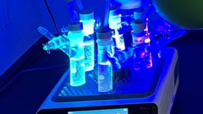 PhotochemistryTraditional batch type photoreactor is difficult to achieve large-scale production through photocatalytic reaction. ChemExpress photocatalytic continuous flow platform can provide process route development and optimization for photochemical reaction projects, achieving milligram to gram scale process development; also it can provide large-scale production of photochemical reaction products, achieving production from kilogram to hundred kilogram scale.Read More -