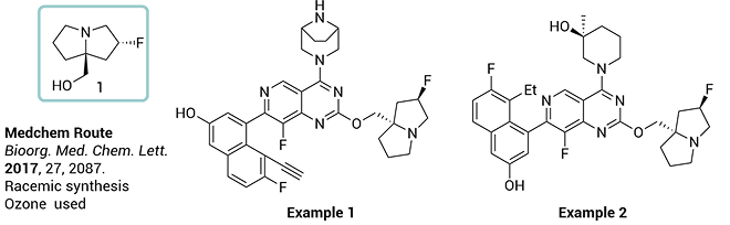 KRAS G12D is one of the most prevalent and challenging mutations to target in cancer. Therapeutics designed against this mutation typically feature a critical chiral scaffold, ((2R,7aS)-2-fluorotetrahydro-1H-pyrrolizin-7a(5H)-yl)methanol. However, existing synthetic routes to this scaffold are lengthy, suffer from low yields, and rely on hazardous reactions and costly chiral separation techniques, thereby limiting large-scale production.