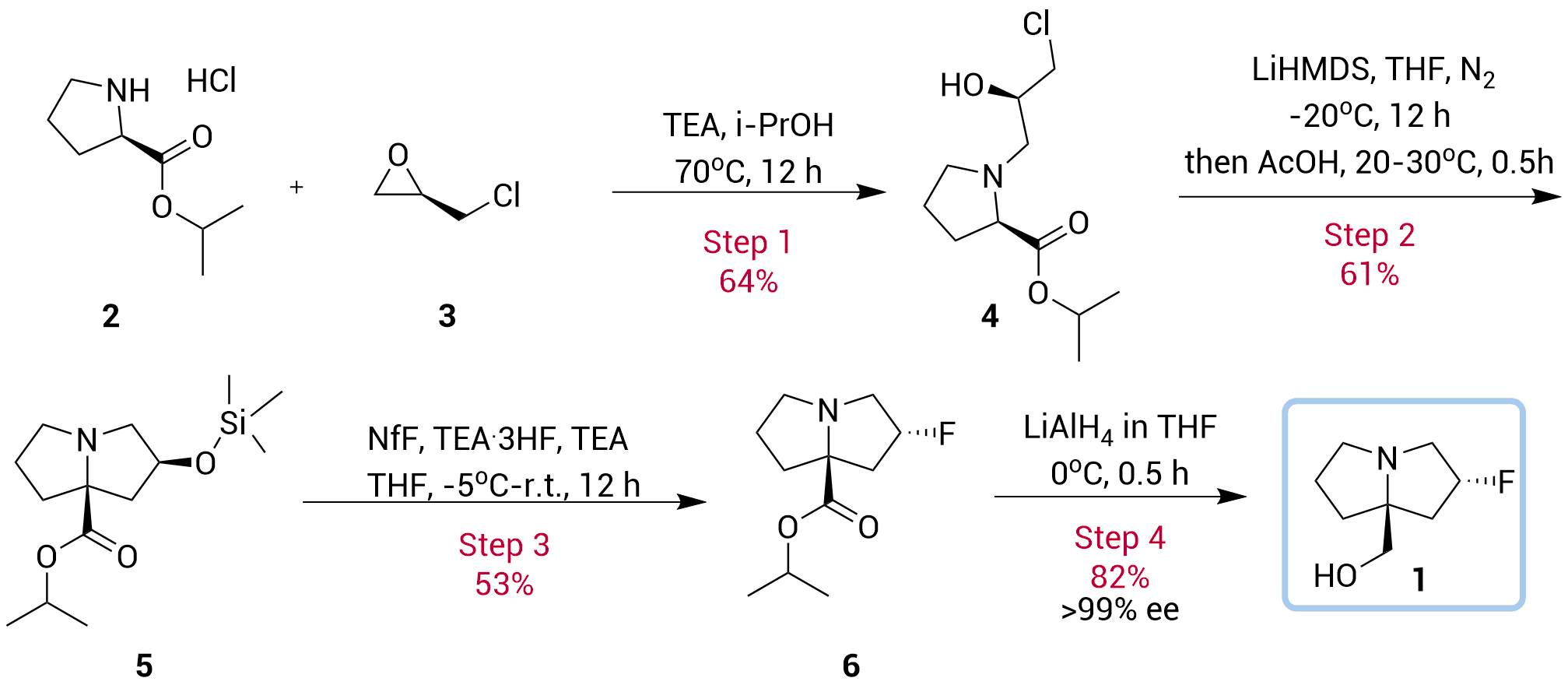 ? 4-Step diastereoselective synthesis · High ee value